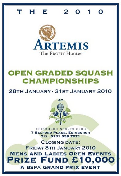 The Artemis sponsored tournament (with a £10K prize fund) will be on from Thursday 28th to Sunday 31st of January 2010 and everyone is more than welcome to come over to watch and support the event according to event co-ordinator Simon Boughton.