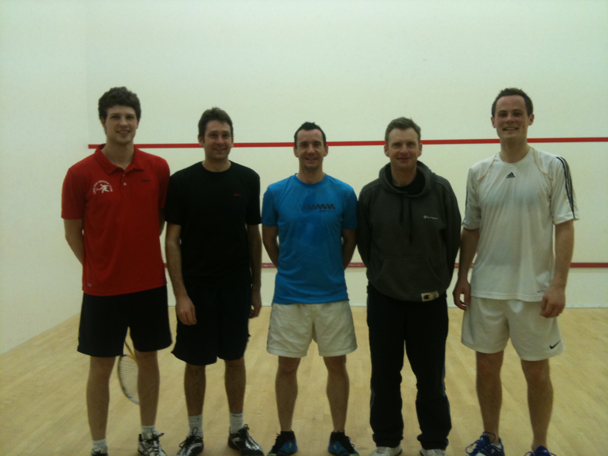 So like a crack o’35 side we were in the bar at the airport and discussed beasting another before departure, but being the professional Owen is (lightweight) he talked us out of it. So we were met by the CS No.1 Dave (Ayerst) who picked us up from George Best Airport and was first on court against Owen (Hadden). Great game this one. Dave gave Owen the run around in the 1st (11-5) and it was difficult to see how Owen was going to make any headway here at all. Dave had a great drive that pinned Owen to the back of the court and not only that, but all of Owen’s half-volley-topspun-crosscourt shots (HVTSCC for short!) were going in the tin……….. (press read more to see the full report)