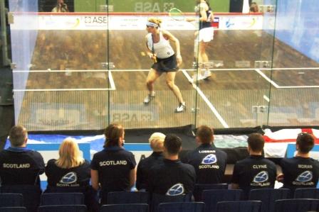 They’ve got a tough one against the England this afternoon, as Alan Clyne (using his Harrow Vapor racket), Chris Small, Stuart Crawford (also with a Harrow Vapor), Greg Lobban (Harrow Power Spark), Dougie Kempsell (also with a Harrow Spark) and Kevin Moran are the squad who have done the business so far.