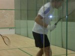I arrived (almost) on time this week, however due to an early start Ben had already played! Once again he’d won 3-0 and not only that, but the challenge is also now in against Dave Craig for his team spot – this Monday – high noon! Well 5pm anyway! Ben played well (according to him) and if you look at the results on the web-site Ben seems to have gained an inflated ego, as he’s given himself MOTM every time he puts the scores in! However he was sitting with an ice pack on his leg when I arrived so he must have been pushed around the court a bit.