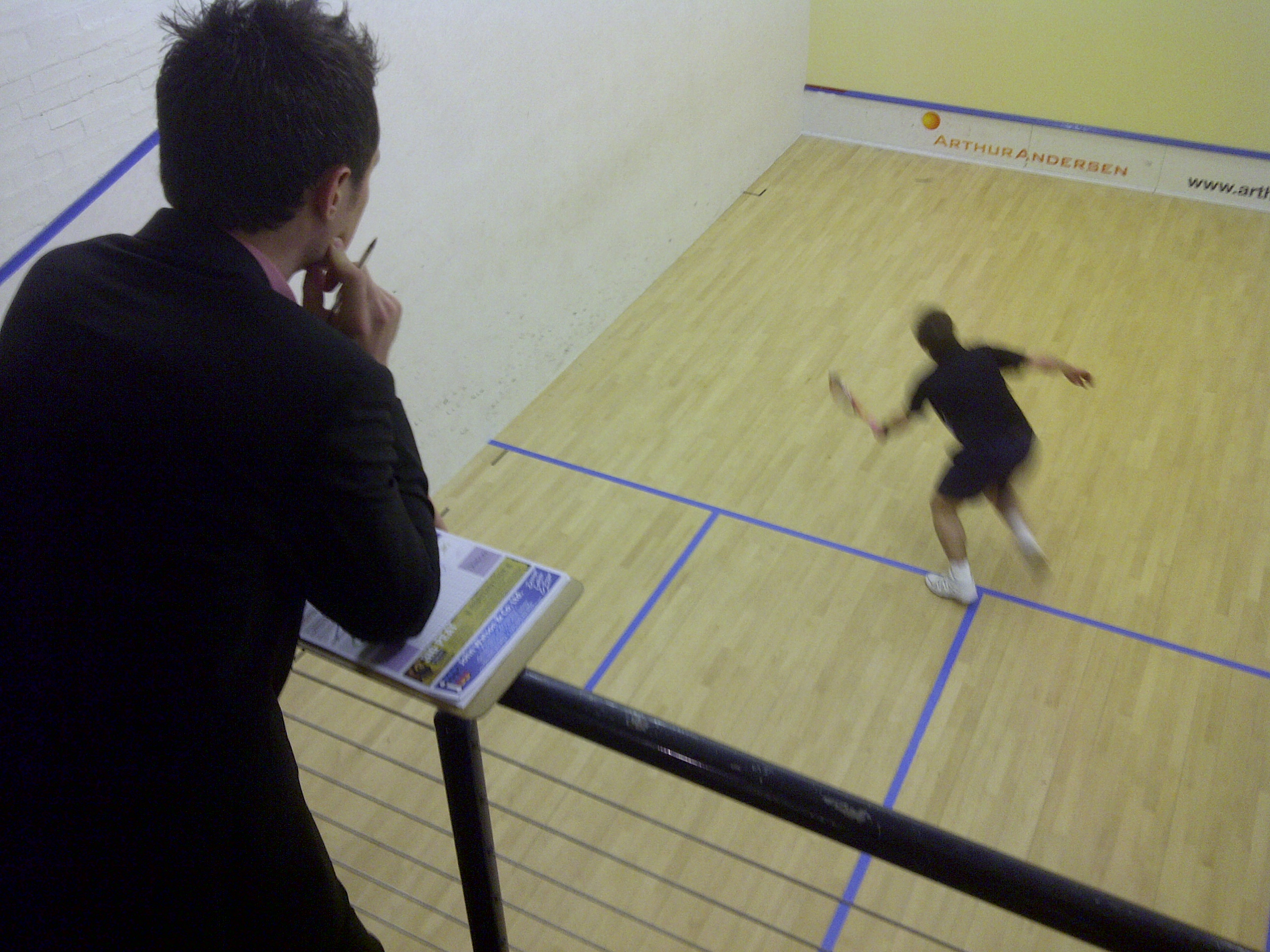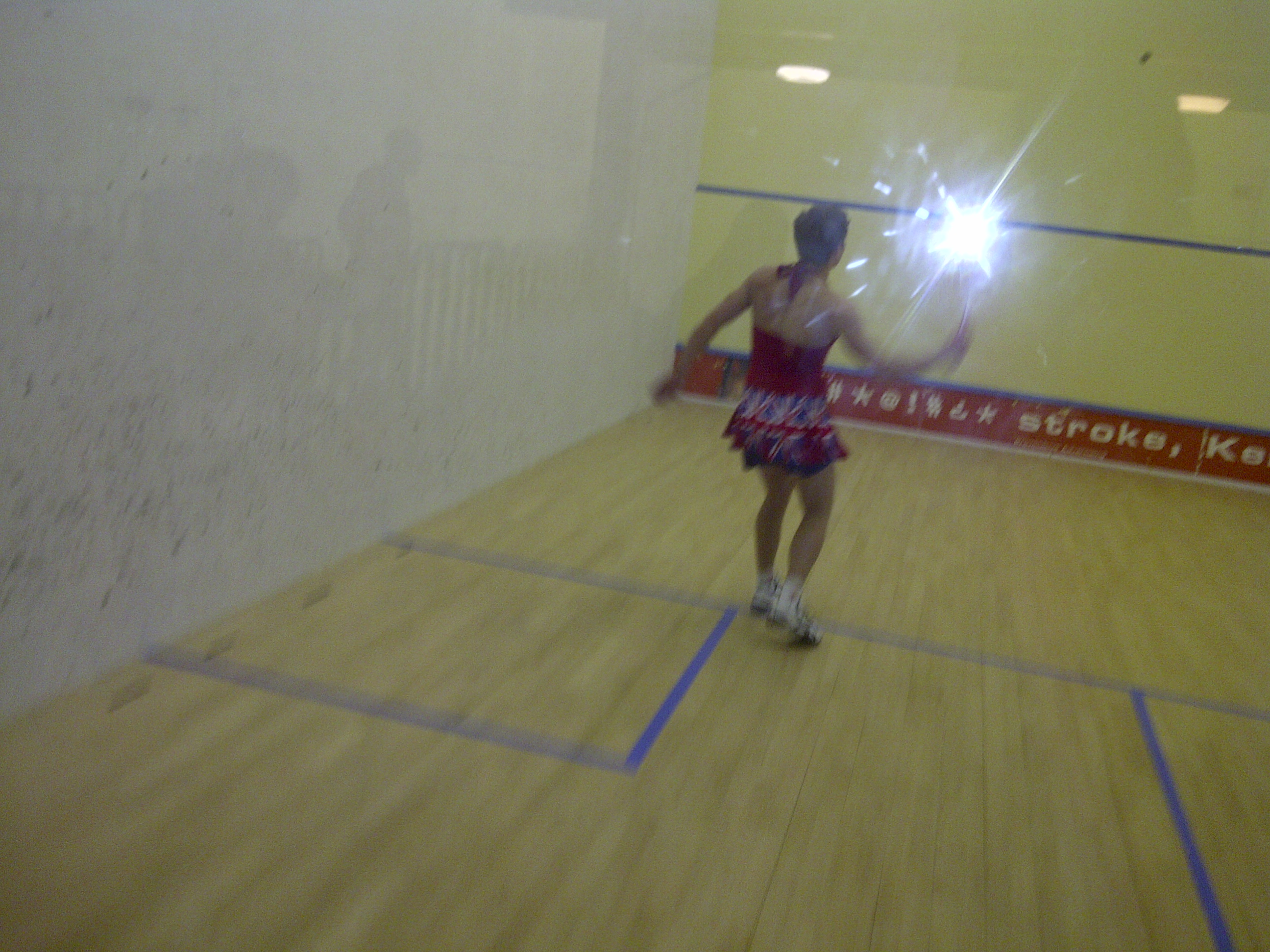 Anyway down to the match and I think Jamie must have been put off by the dress as he lost the 1st 11-8, but came storming back to win the 2nd 16-14 in a great battle of wills. The 3 rd was where the whole match was decided for me, as at 15-15 the winner was surely going to take the momentum and confidence into the rest of the match. Unfortunately, for us, Jamie lost this 15-17 and was looking tired in the 4th as Nell finished him off 11-8.
