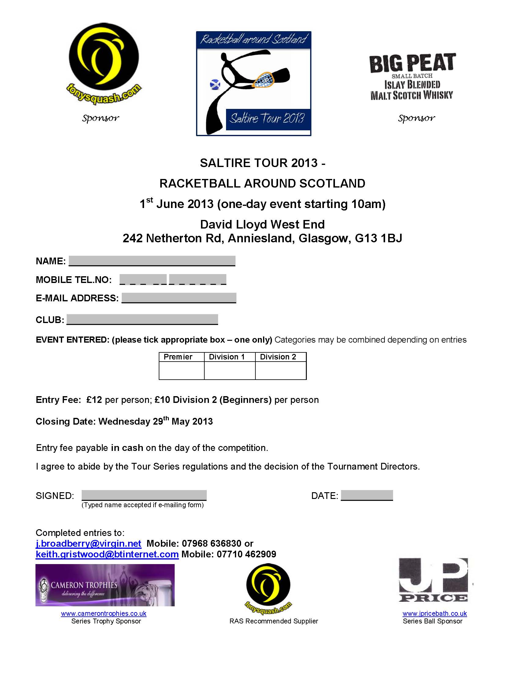 Racktball Around Scotland 2013 Tour Starts in 2 weeks