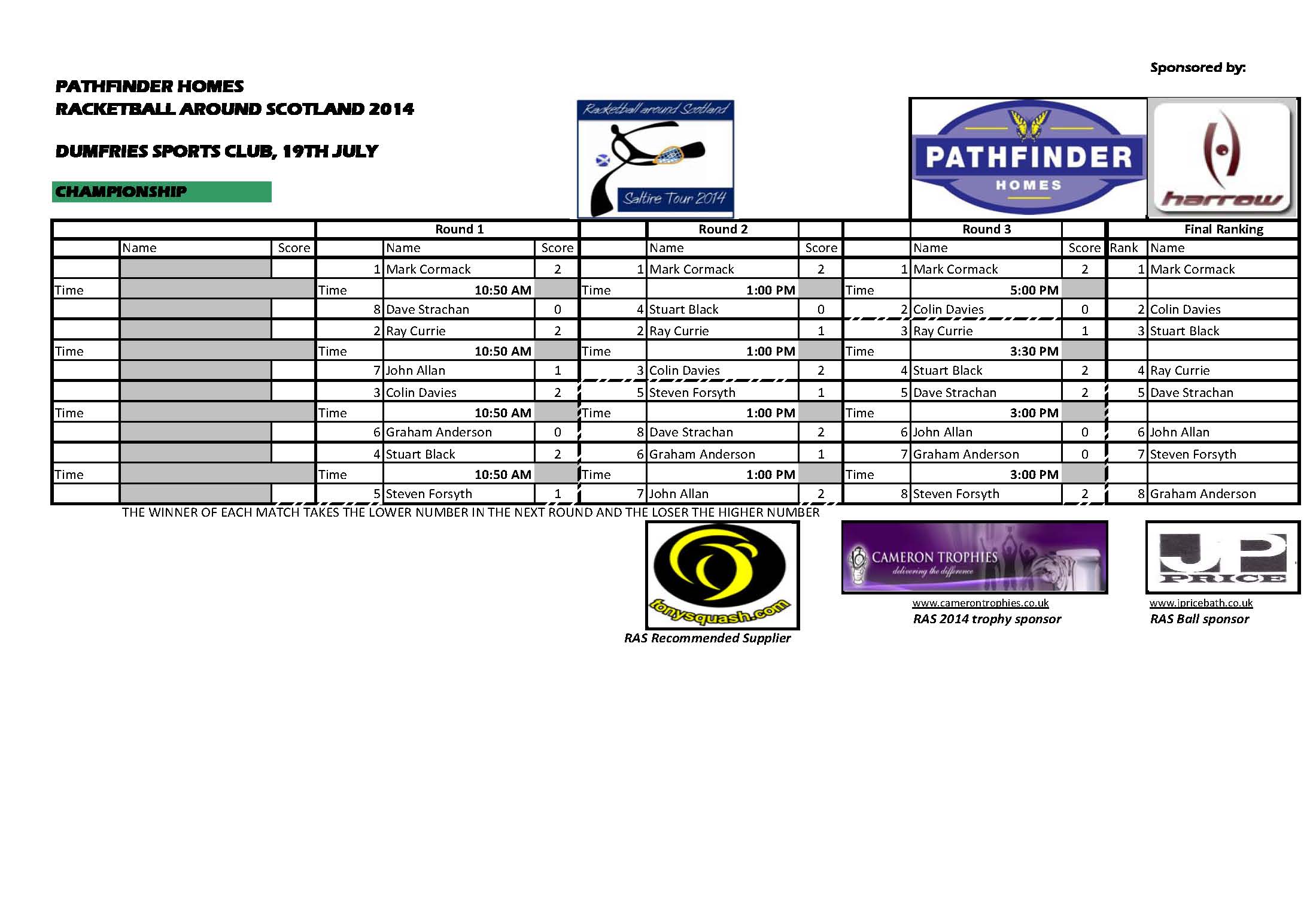Results for the RASTA Dumfries Tournament – 19th July 2014