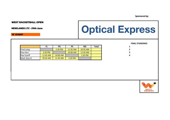 > Draws for the Optical Express Sponsored 2019 West Open Racketball Tournament at Newlands on Saturday 29th June > West Open 2019 – B Draw_Page_1