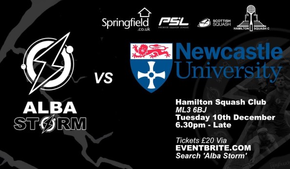 UK Premier Squash League at Hamilton on Tuesday 10th Dec. Alba Storm v Newcastle Uni