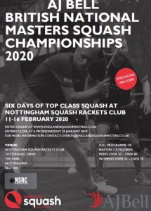 The AJ Bell British National Masters Squash Championships will be held from 11th. to 16th. February 2020