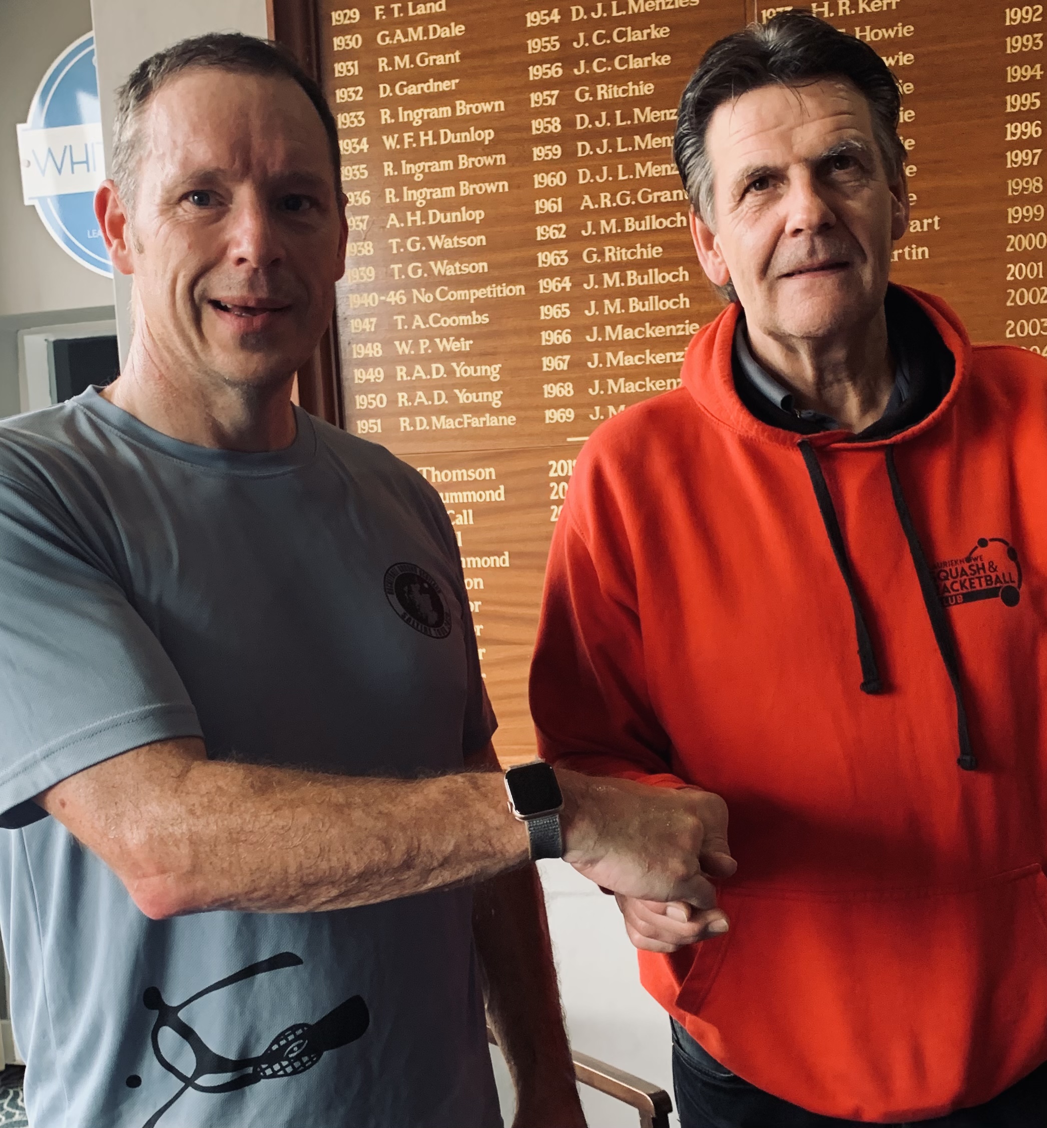 Next up was Chris (Murphy) at No.1 v Matt Bedwell. I didn’t see this, but I like to imagine that when Chris was fresh (i.e. in some of the first game) he was amazing and moved the ball like a young Jahangir Jase! Then when Matt wore him down, he moved the ball like a much, much older Jason. Then, by the end, he got tanked like a really old Jason ….. without his Argonauts! (3-1 to Matt!)