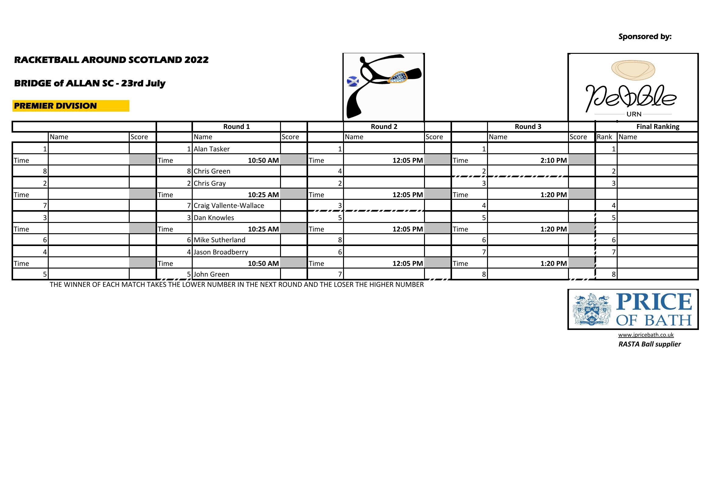 Draws for RASTA at Bridge of Allen this Saturday (23rd July)