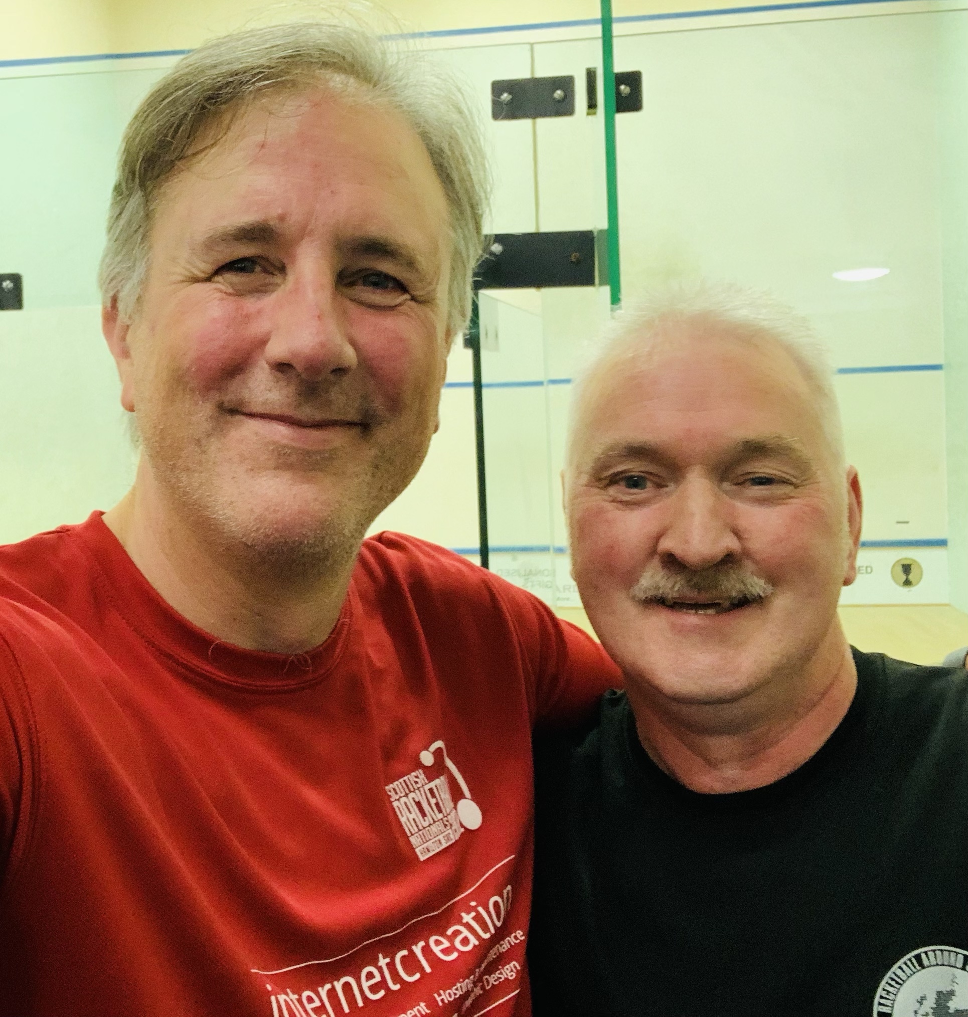 The picture above shows John (the Harrow sponsored Edinburgh player) with both his hard earned Scottish National’s Trophy & Medal along with his trusty Harrow Vapor squash racket.