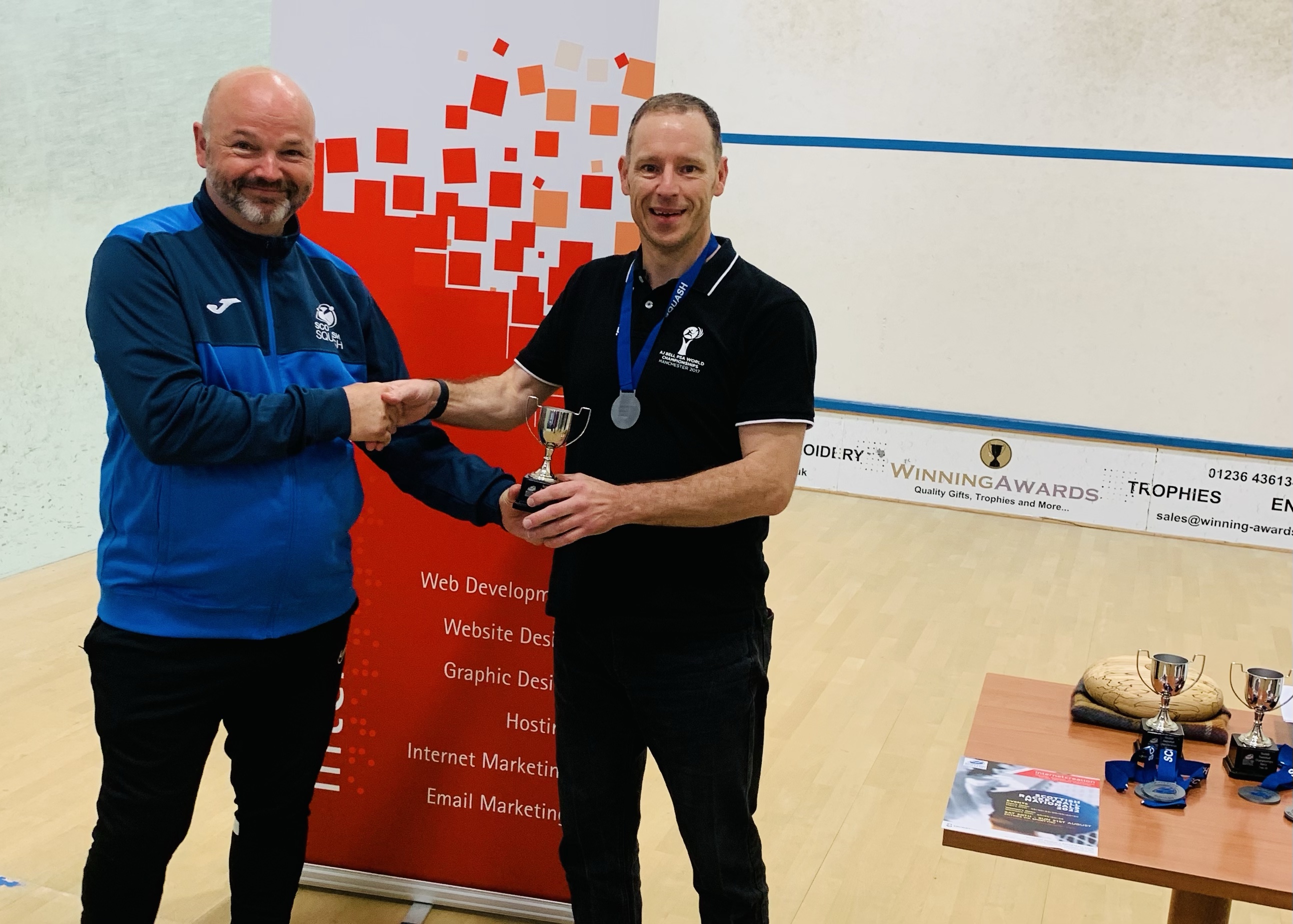 Alan, who was seeded No.2, has now won a very impressive 8 titles (including doing the double with 3 Titles in a row). He beat Greg Lobban 3-1 in the Final that was live streamed on Facebook (11-3, 6-11, 11-2, 11-6).